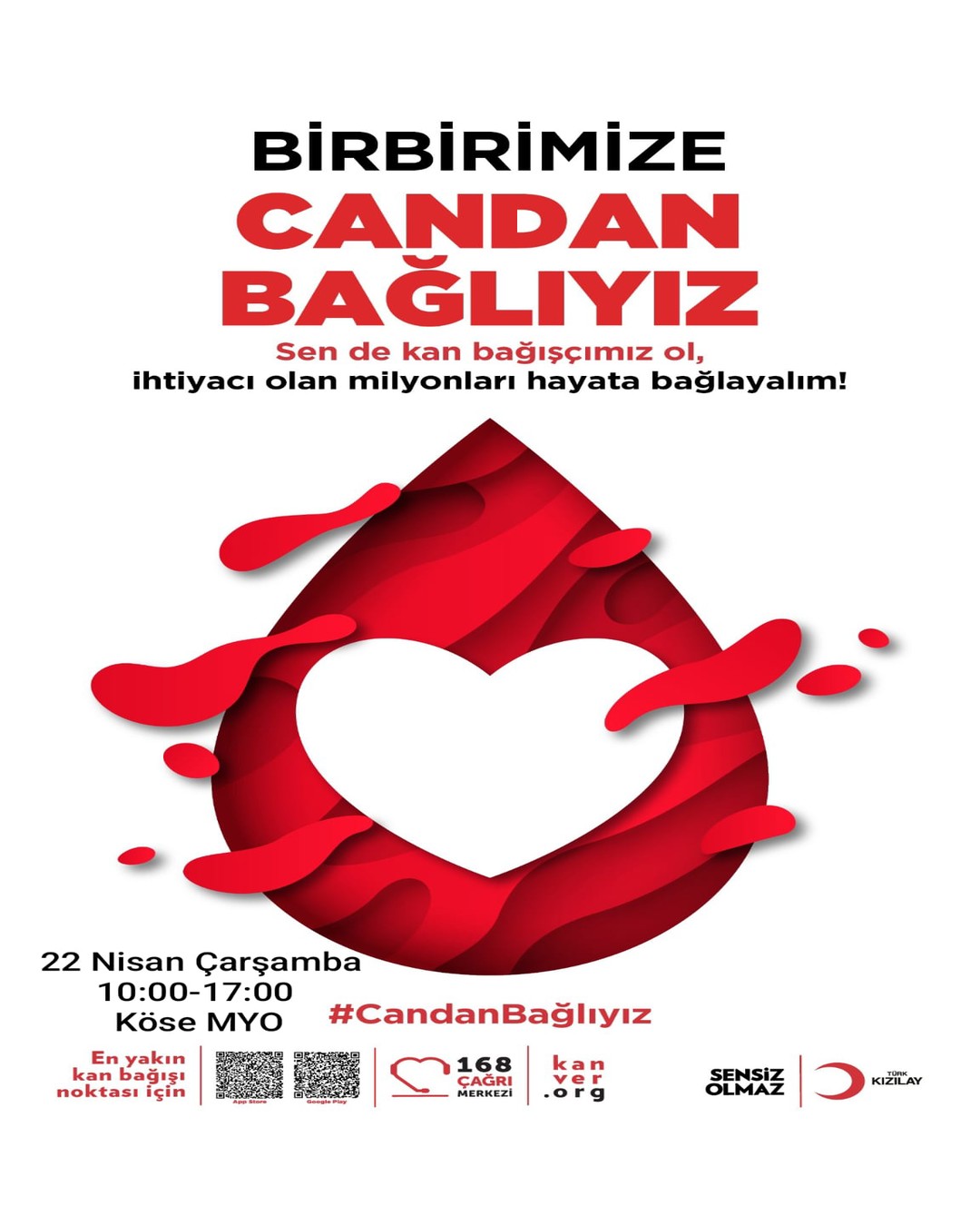 “Birbirimize Candan Bağlıyız” sloganıyla Kızılay tarafından düzenlenen kan bağışı kampanyasına seni de bekliyoruz.