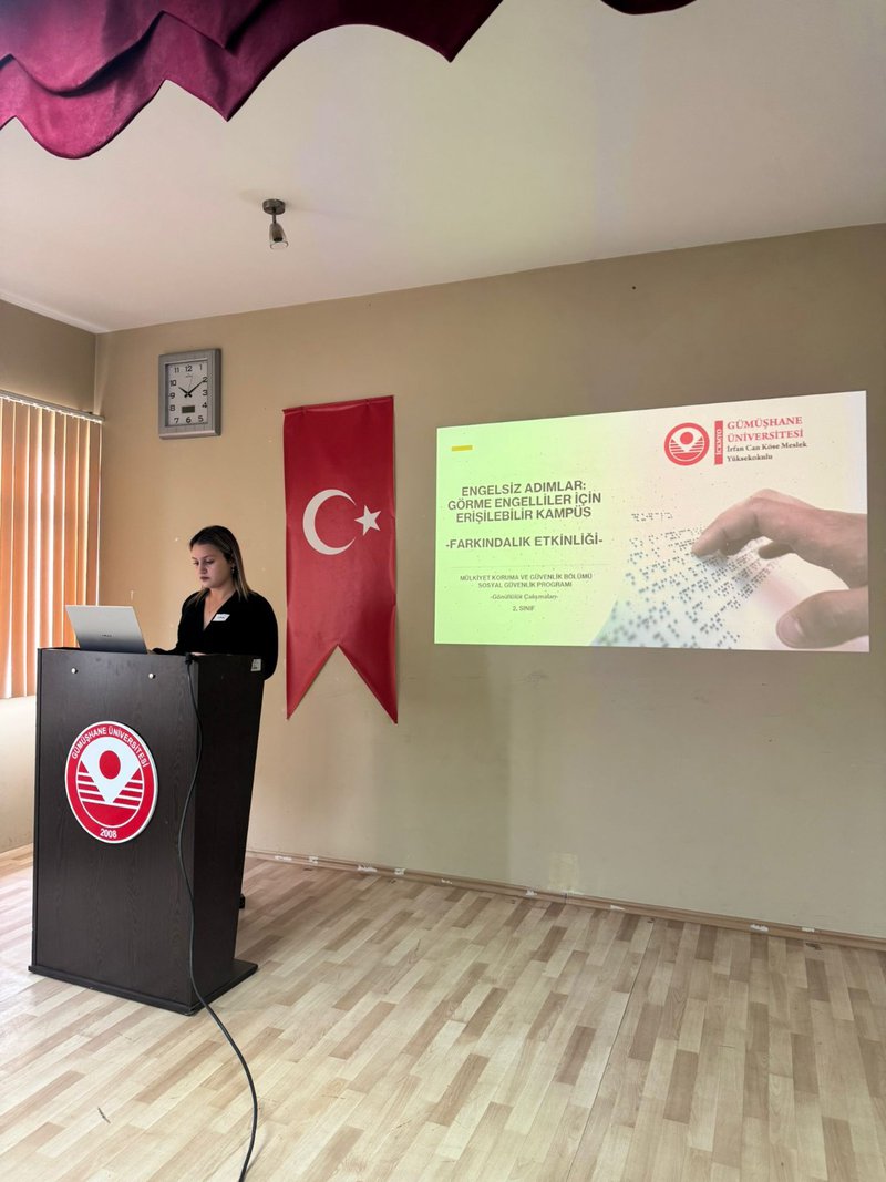 Etkinlik kapsamında; dezavantajlı gruplar kavramı, erişilebilirliğin neden önemli olduğu, görme engelli bireylerin günlük hayatta karşılaştıkları zorluklar ve kampüs yaşamında fark edilmeyen engeller başlıkları ele alındı. Sunumlarda, erişilebilirliğin yalnızca fiziksel düzenlemelerle sınırlı olmadığı empati, toplumsal bilinç ve kapsayıcı bir bakış açısı gerektirdiği vurgulandı.