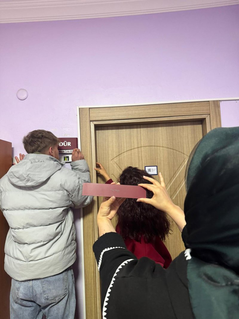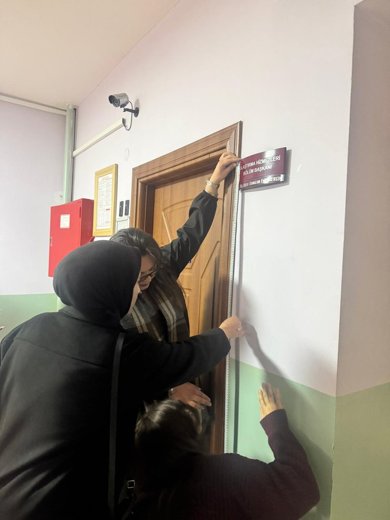 Etkinlik süresince öğrenciler tarafından yürütülen uygulamalı çalışmalar da katılımcılarla paylaşıldı. Bu çerçevede, Meslek Yüksekokulumuz genelinde yapılan saha incelemeleri sonucunda Braille alfabesi kullanılarak toplam 37 adet erişilebilir oda ve birim isimliği alanında uzman kişilerden profesyonel destek alınarak hazırlanmıştır. İsimliklerin hazırlanma sürecinde öğrenciler kat ve birim bazlı ölçümler yapmış, tespitlerini kayıt altına almış ve faaliyet süreci boyunca düzenli raporlamalar gerçekleştirmiştir. Üretim sürecinin sonunda bu isimliklerle, görme engelli bireylerin kampüs içerisinde daha bağımsız ve güvenli hareket edebilmesine katkı sağlanması hedeflenmiştir. Uygulamaya dayalı bu gönüllülük faaliyeti sayesinde öğrenciler, teorik bilgilerini sahada deneyimleme fırsatı bulmuş, toplumsal sorumluluk, empati ve erişilebilirlik bilinci kazanmıştır. Etkinlik, üniversite-yerel yönetim iş birliğinin toplumsal farkındalık oluşturmadaki önemini bir kez daha ortaya koymuştur.